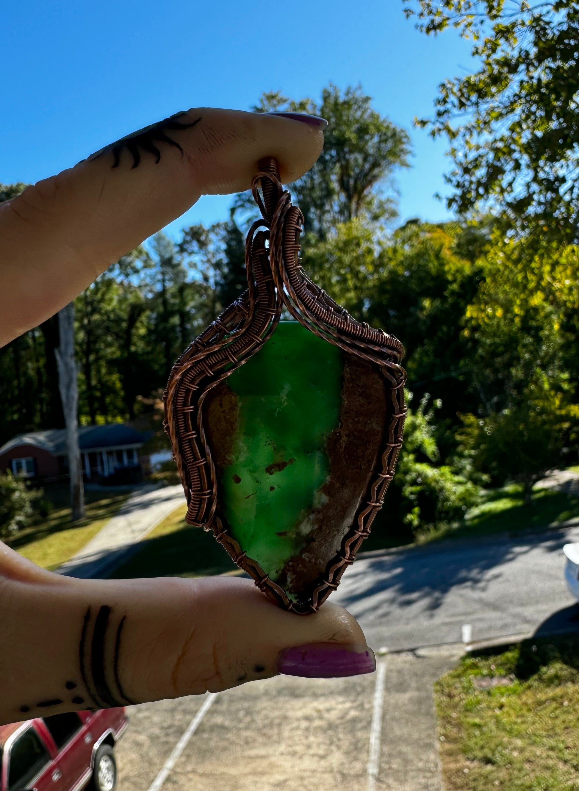 Copper wire-wrapped crystal pendant