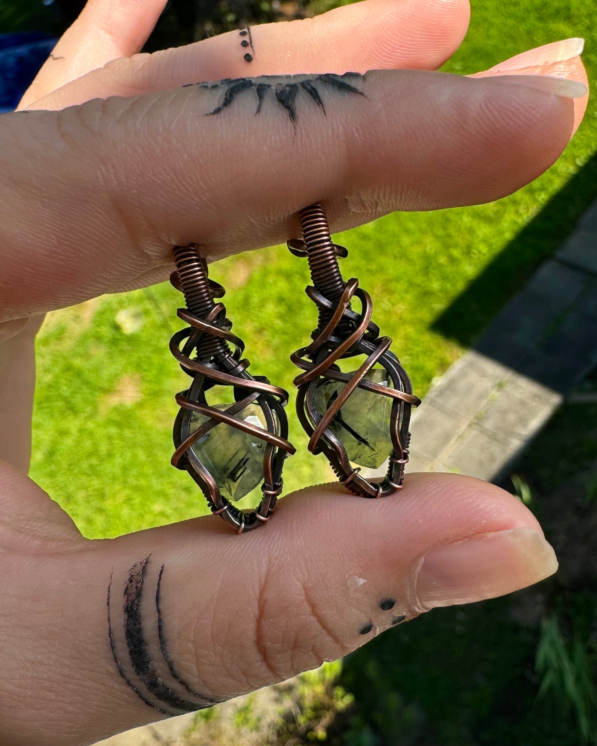 Copper wire-wrapped crystal earrings